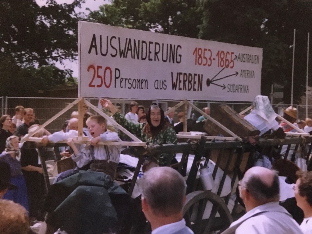 Below are photos from the Wendishe Fastnacht that has been celebrated for 180 years. It is from the villiage Werben and shows that the emmigrants from those villliages are still remembered.